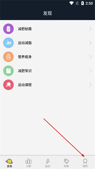 1、打开跑步器app的发现页面,在底部导航栏点击我的选项。