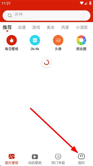 1、打开神奇动态壁纸App,点击页面底部的我的选项。