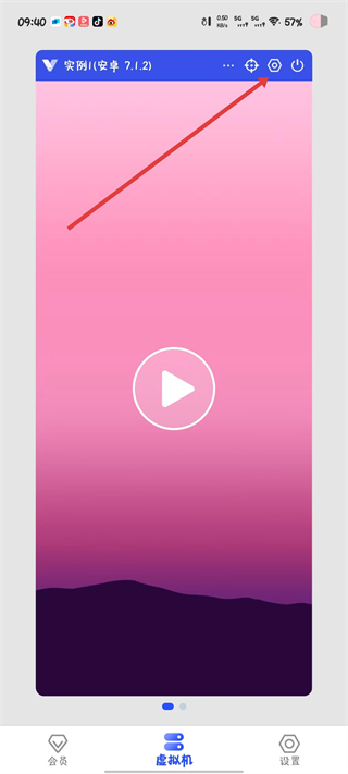 2、进入创建好的虚拟机界面,点击右上角设置图标,进入设置页面。