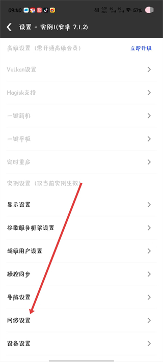3、点击网络设置选项,进入网络相关参数的配置页面。