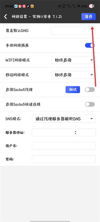 4、在网络设置页面调整所需参数,设置完成后点击保存。
