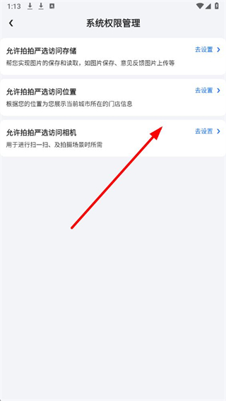 4、在系统权限管理页面,选择需调整的权限,点击对应选项旁的去设置,即可完成权限的管理操作。