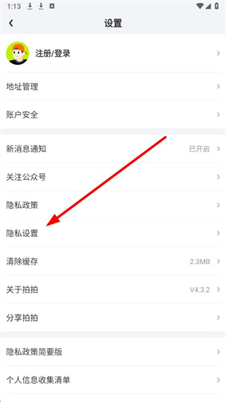 3、在设置页面,找到隐私设置选项并点击,进入对应的操作界面。
