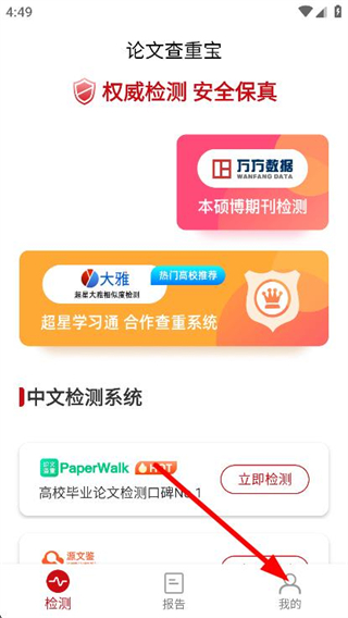 1、打开论文查重宝,点击右下角我的,进入个人中心页面。