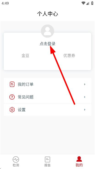 2、在个人中心页面,点击上方登录区域,进入登录界面。