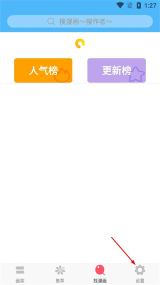 1、打开漫画软件的推荐界面,点击底部的找漫画选项,进入漫画搜索页面。