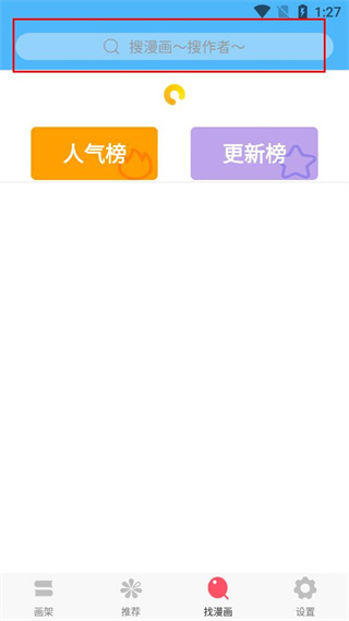 2、在找漫画页面的搜索框,可输入漫画名或作者名,进行对应的内容搜索。
