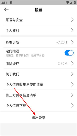 3、在设置页面,找到并点击底部退出登录选项。