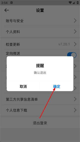 4、在提醒窗口中点击确定按钮,即可退出账号。