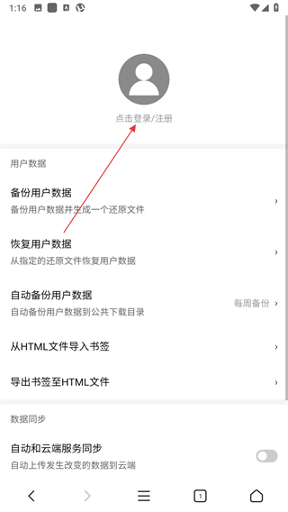 3、点击点击登录/注册区域,跳转至登录/注册页面。