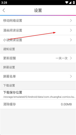 3、在设置界面找到漫画阅读设置选项,点击该选项进入对应的配置页面。