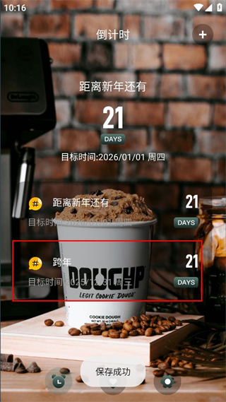 4、确认目标日等信息后点击保存按钮,等待界面显示保存成功,完成倒计时的添加操作。