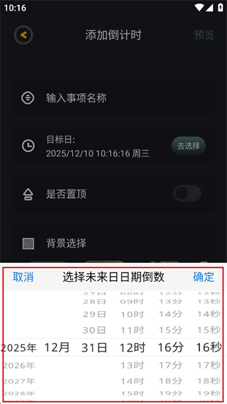 3、在日期选择界面,挑选对应的未来日期作为倒计时的目标日,完成日期的选定操作。