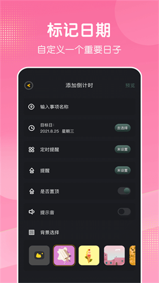 倒数日:距离某个记忆日期,还剩多少天,天数倒计时。