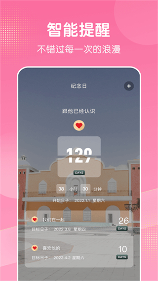 纪念日:倒数纪念日app记录某个情侣纪念日日期,并显示已发生天数,恋爱计时器。