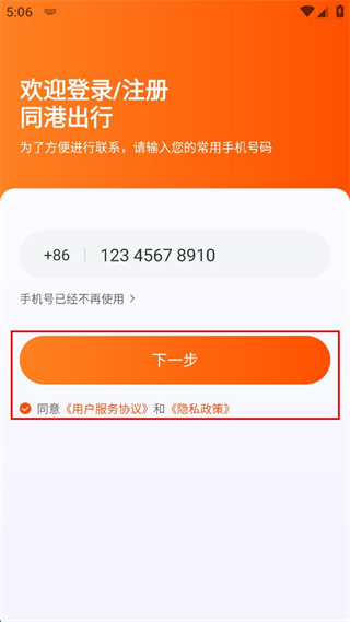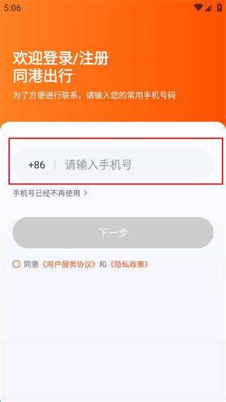 2、进入登录注册页面,在手机号输入框填写对应的常用手机号码,准备进行后续操作。