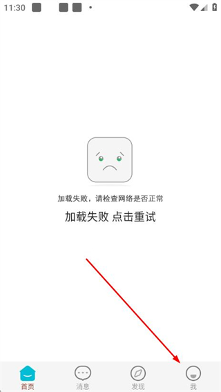 1、打开西苑医院APP,若首页加载失败,点击我进入登录/注册页面。