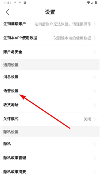 3、在设置页面中,找到语音设置选项并点击,进入语音设置页面。
