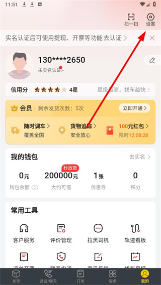 1、打开货车帮货主app,点击右下角我的选项,进入个人页面。
