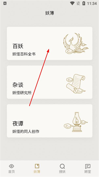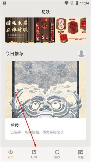 1、在纪妖app主界面,点击底部妖簿,进入妖簿页面。