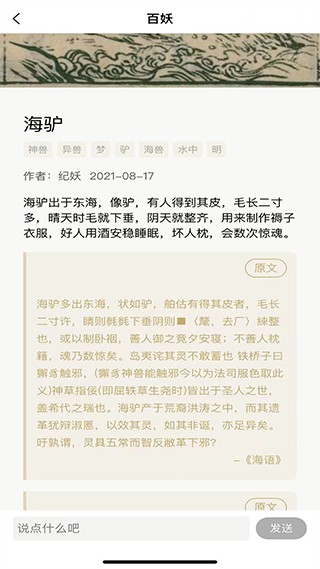 一款专门记载的古代的妖怪知识文库APP,致力于收集、整理、介绍、分享古人文献中的“妖怪”,包括但不仅限于妖、怪、神、鬼、精、魔、仙等怪力乱神,甚至还包括一些神奇的植物。