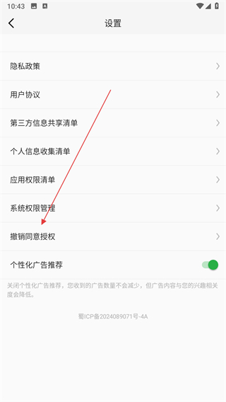 3、在设置界面中找到撤销同意授权选项并点击,弹出温馨提示确认窗口。