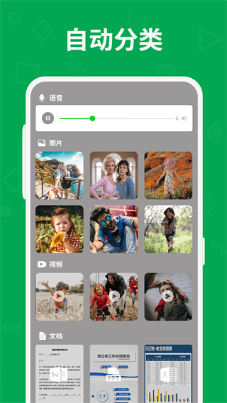 高效管理聊天记录的app,支持对微信、qq聊天的照片、视频、语音、及各类文档进行扫描查找删除导出,让您更便捷的管理它们。更多功能持续更新中....