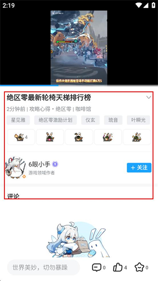4、进入绝区零最新轮椅天梯排行榜详情页,可查看该内容的相关信息及互动区域。