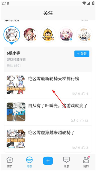 3、在动态页面的关注板块里,找到绝区零最新轮椅天梯排行榜内容,点击该内容。