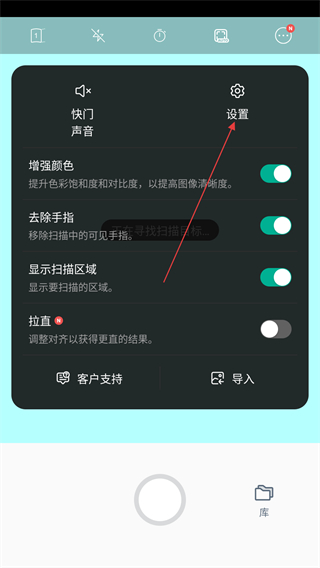 1、打开vFlat扫描仪进入扫描界面,点击圆形功能按钮弹出操作菜单。