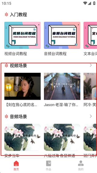 4、完成登录操作后返回首页,可查看入门教程视频场景音频场景等功能内容。