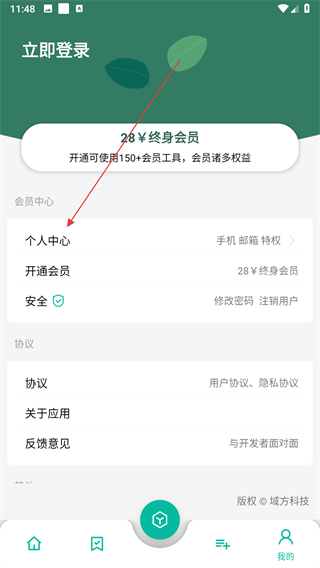 2、在个人页面找到个人中心选项,点击该选项进入登录相关操作界面。