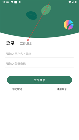 3、在登录界面中点击立即注册选项,切换至账号注册的信息填写页面。
