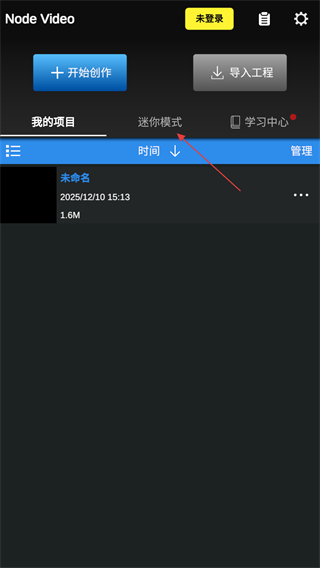 1、启动nodevideo的应用,点击首页上方未登录的按钮。