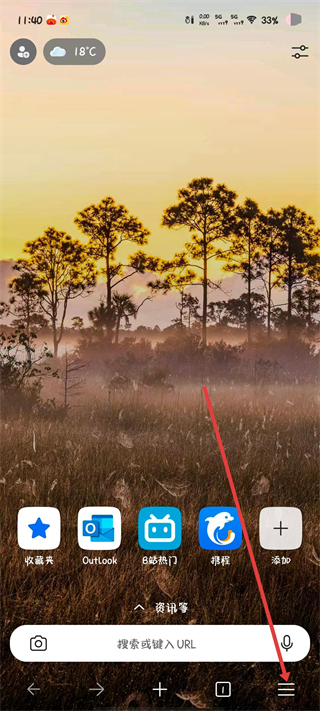 1、打开Edge浏览器进入首页,点击导航栏最右侧的菜单按钮,展开功能选项列表。