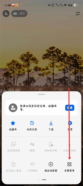 2、在功能面板中,找到设置选项并点击,进入浏览器的设置界面。
