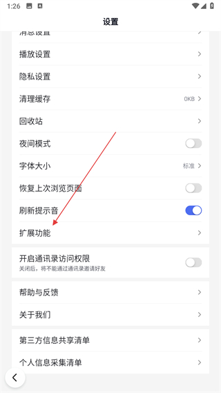 2、进入百度的设置管理界面,在设置页面里找到扩展功能选项并点击。