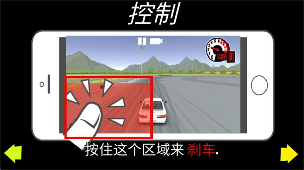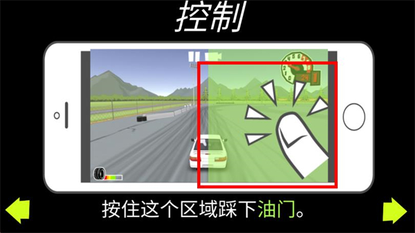 2、按照控制提示,按住右侧区域可踩下油门。