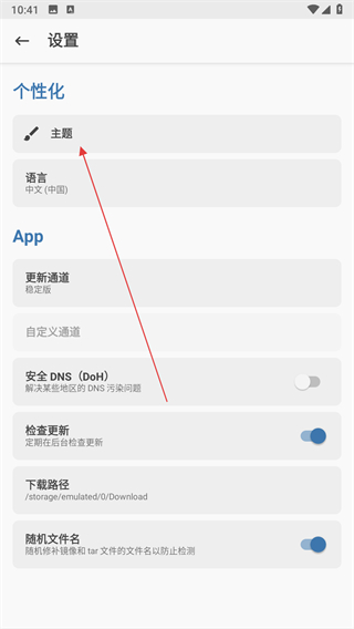 2、在设置页面中找到主题选项,点击该选项进入应用的主题样式选择界面。