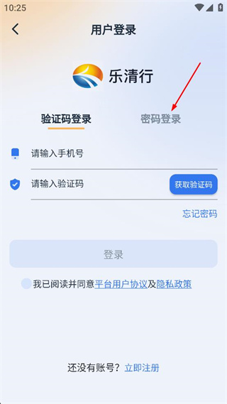 2、在登录界面点击密码登录选项,切换至密码登录的输入页面。