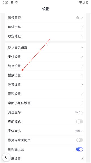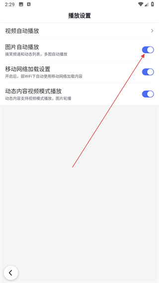 4、在设置页面中找到播放设置选项,点击进入后找到图片自动播放开关。