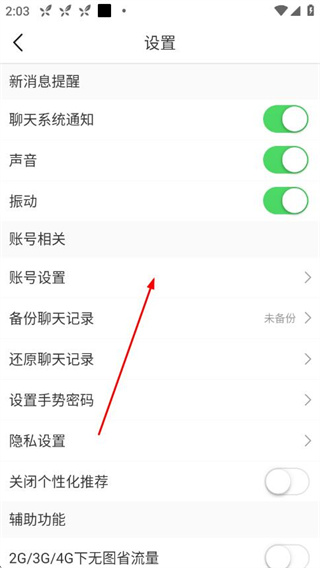 3、 在设置页面点击账号设置选项,进入账号设置页面。