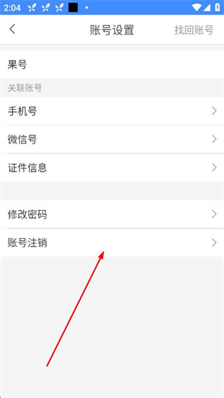 4、 在账号设置页面选择账号注销选项,进入账号与安全的注销协议页面。