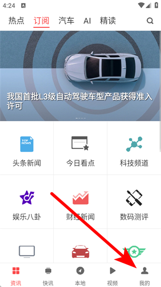 1、打开ZAKER,进入我的界面,我们可以点击推送资讯。