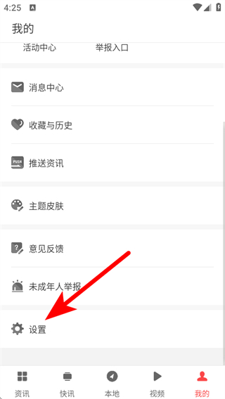 2、在我的页面我们需要找到设置选项,点击进入设置界面。