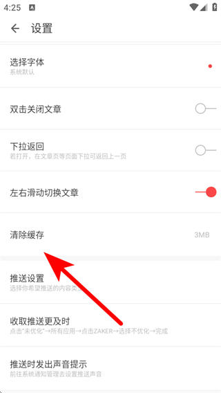3、在设置页点击清除缓存,触发清除缓存的确认提示弹窗。
