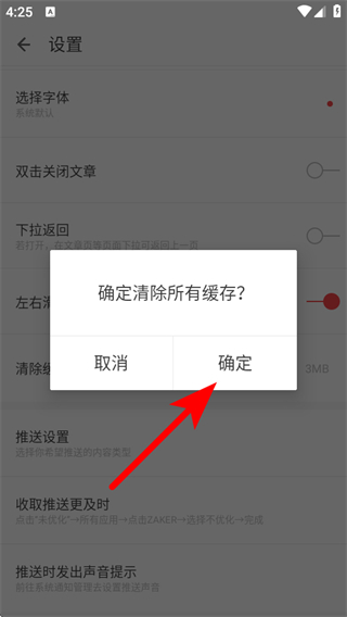 4、在提示框中点击确定,完成扎客app缓存数据清除操作。
