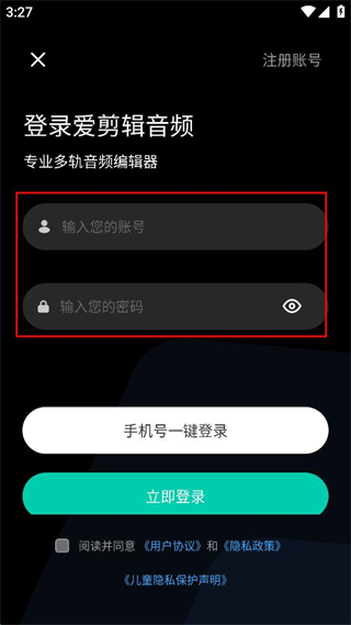 2、在我的页面,点击登录账号区域,跳转至登录爱剪辑音频的界面。