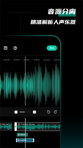 支持对音频素材进行精确毫秒的编辑操作,支持导入多段音频,进行多轨道的音频剪辑、合并、变速操作。