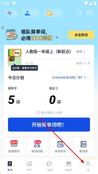 1、打开百词斩APP,点击页面底部导航栏的我选项。
